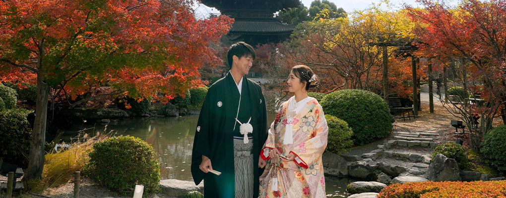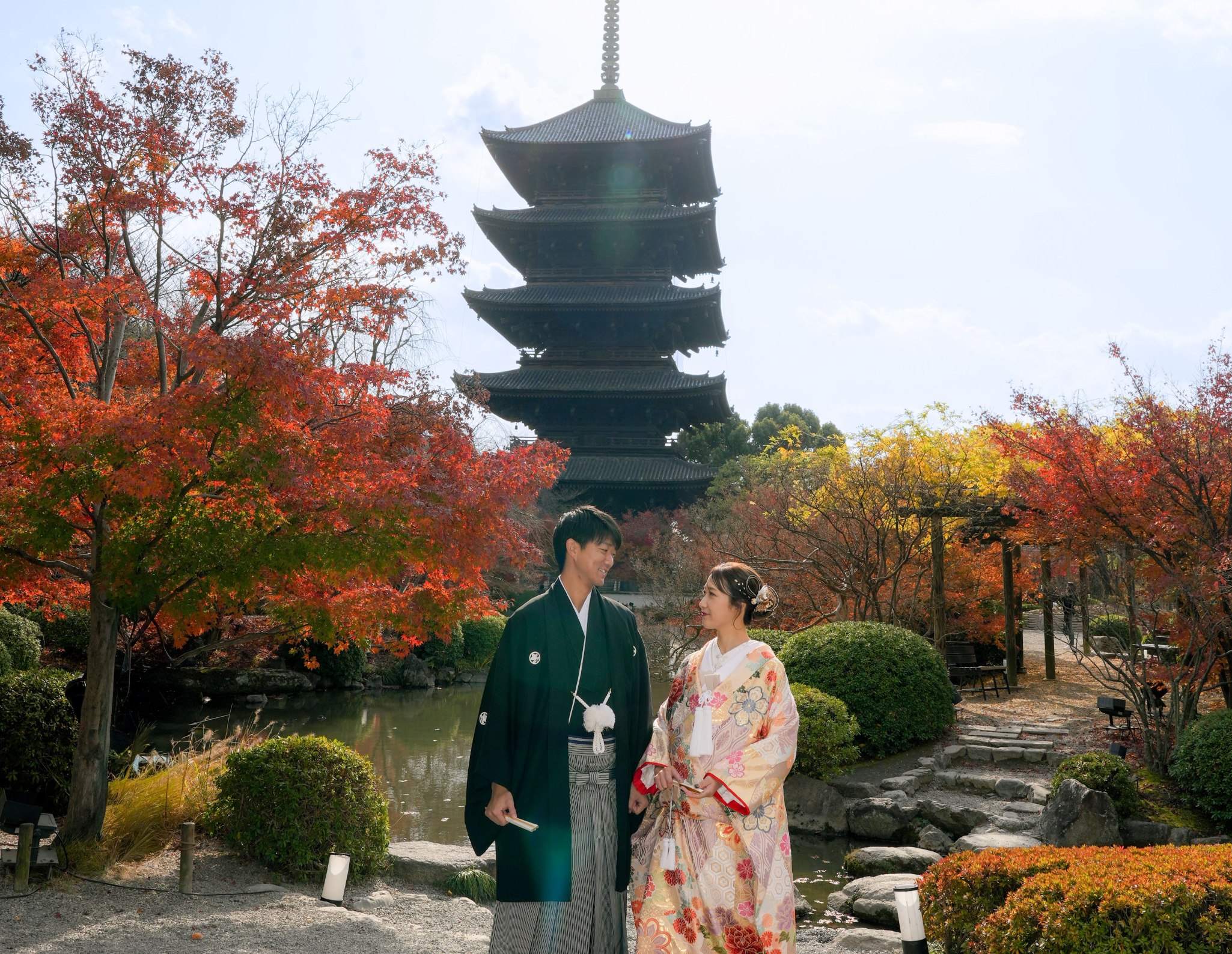 京都の歴史ある神社仏閣や有名施設で叶える、おふたりのオリジナルフォトウエディングプラン。