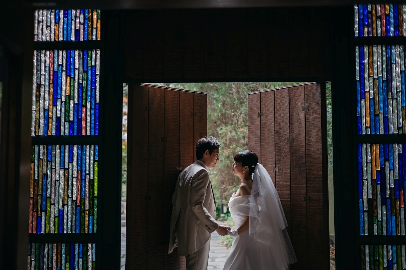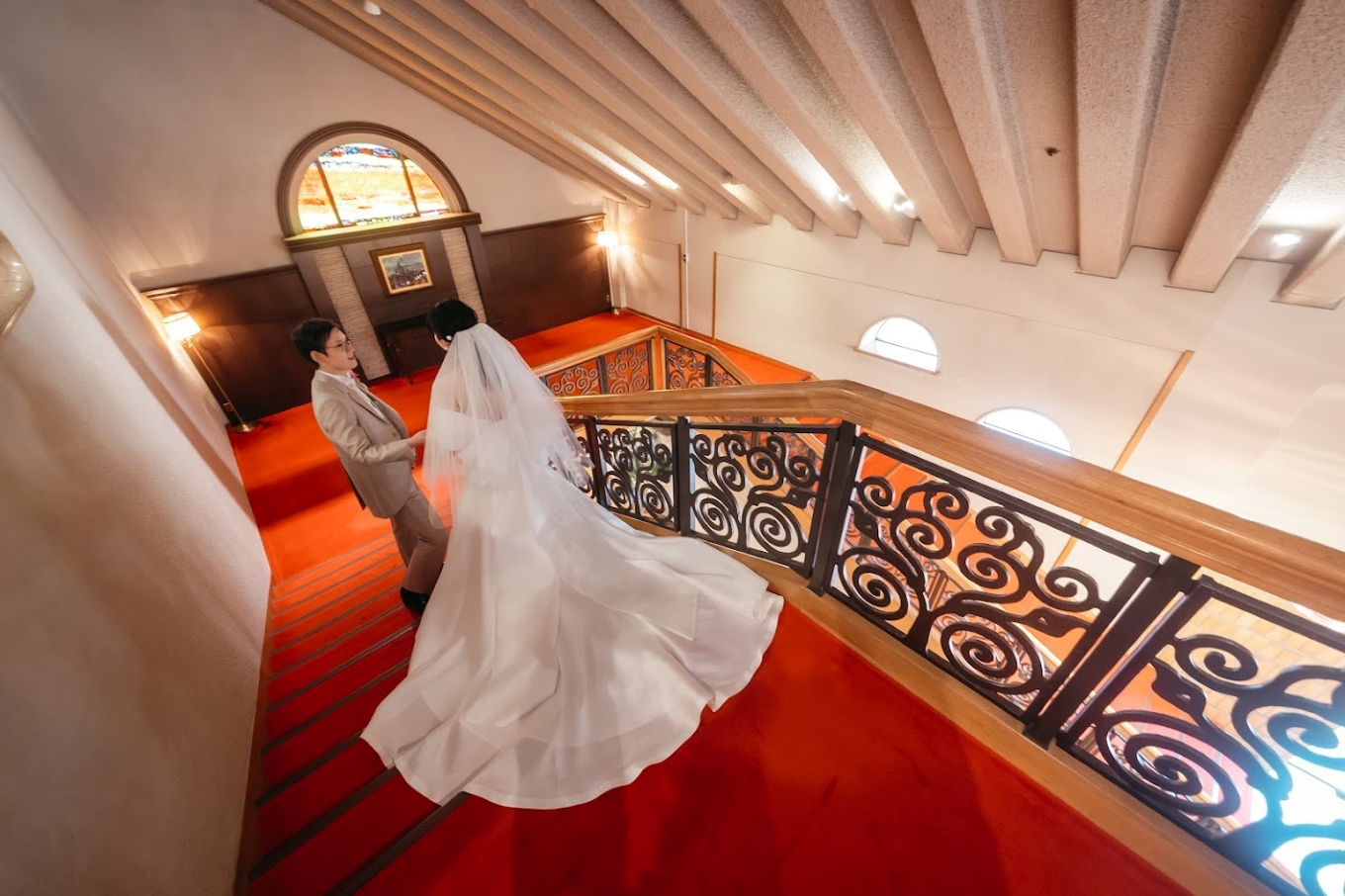 【撮影可能期間:2026年3月31日まで】ゆったりと落ち着いた館内、野鳥がさえずる中庭、何度も訪れたくなる歴史あるくつろぎ空間。 「千里中央駅」から徒歩約5分の、緑豊かな邸宅風ホテルです。3月の閉館まで、チャペルやロビー、赤絨毯の大階段などレトロな雰囲気の中での撮影が叶います。 また神殿や緑豊かな空間もあり、和装も映え歴史あるホテルです。